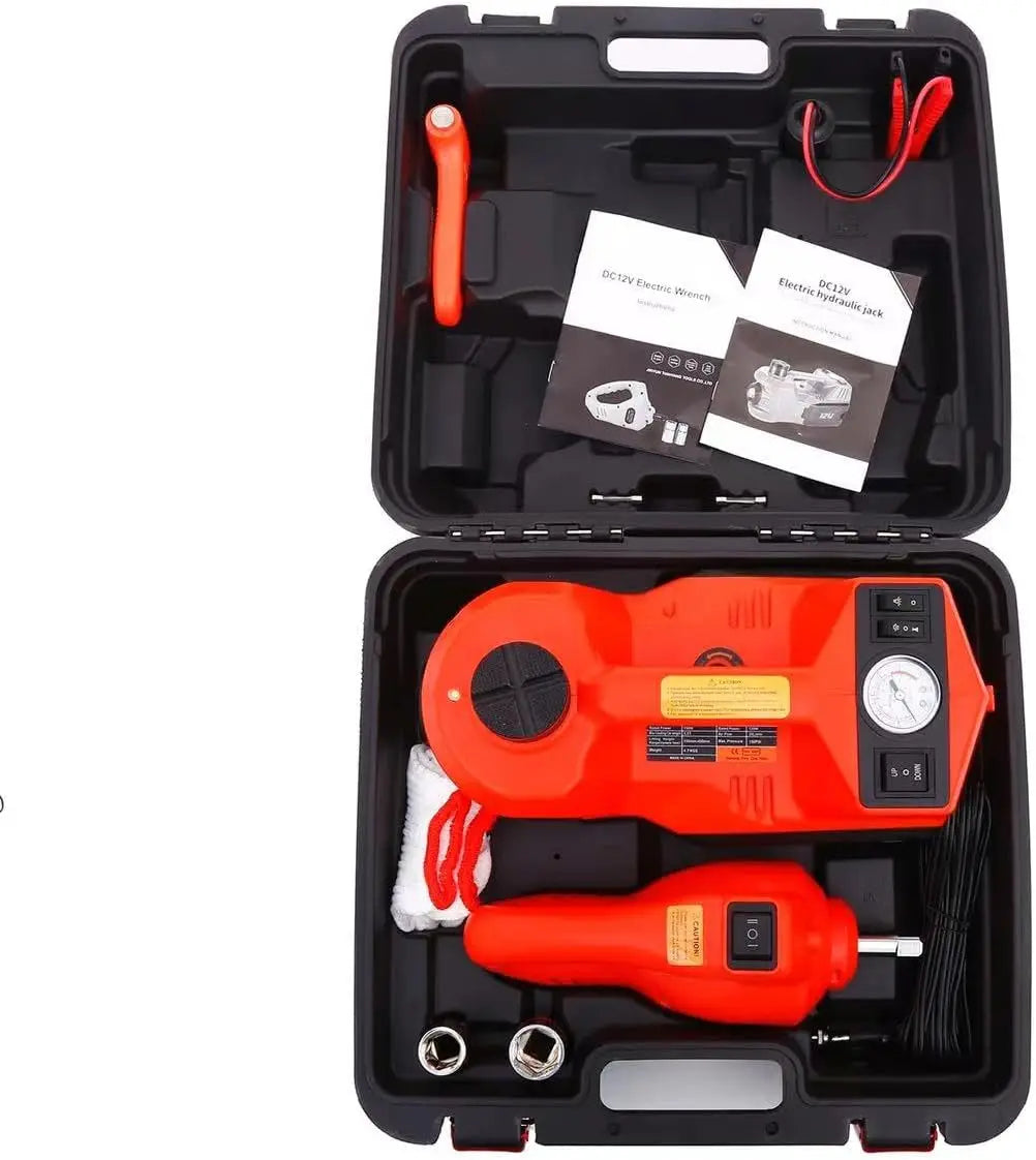 The jack comes as part of a complete kit, including a compact carrying case for storage, power cables, and necessary accessories to ensure a quick and efficient lifting process—whether you're changing a tire or performing underbody inspections.